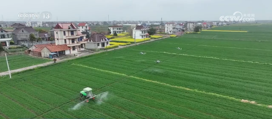 这是位于南通通州区十总镇的一处高尺度农田,多架植保无人机和自走式植保机正正在麦田里进行喷洒功课。因为本地前期降水较少,延缓了小麦发展,而跟着比来气温逐步回暖,小麦发展进入了环节期。本地组织农技人员深切田间,开展墒情、虫情监测,喷灌,
