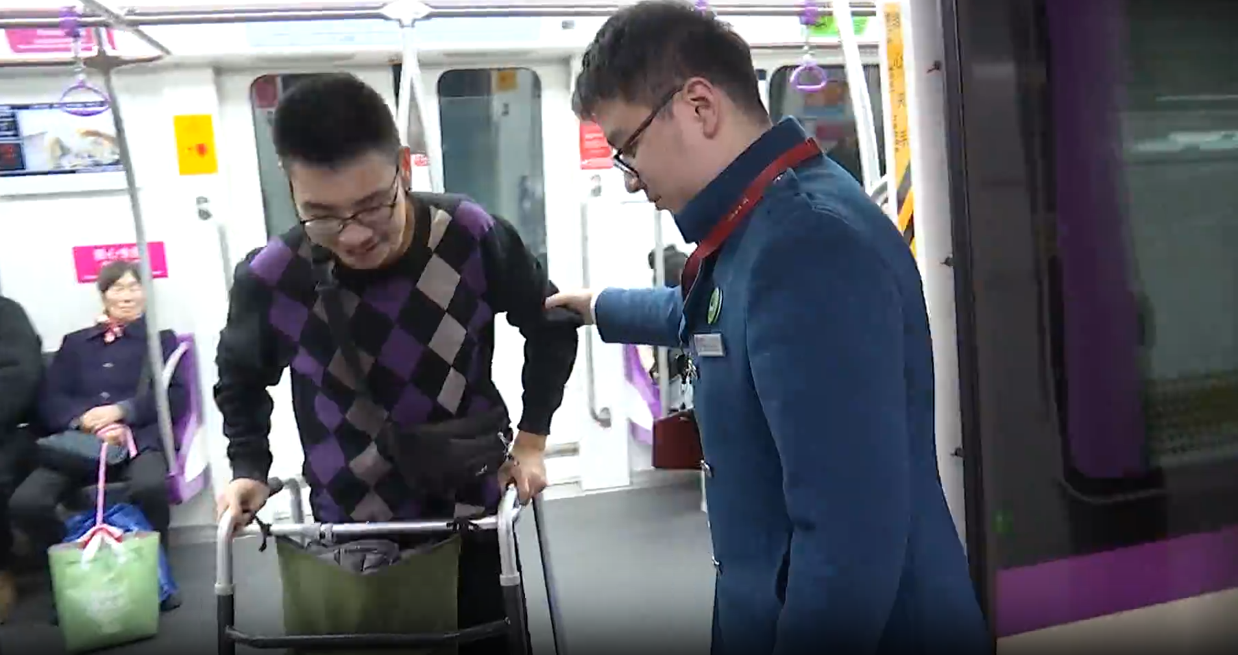 杭州地铁扶植三路坐值班 冯超:他其时穿得是冬季的冲锋服,有毛线衣这些,裤子也比力厚沉,行走方面较着看出来有一点点坚苦。我们上前扣问,他起头回应需要帮帮。