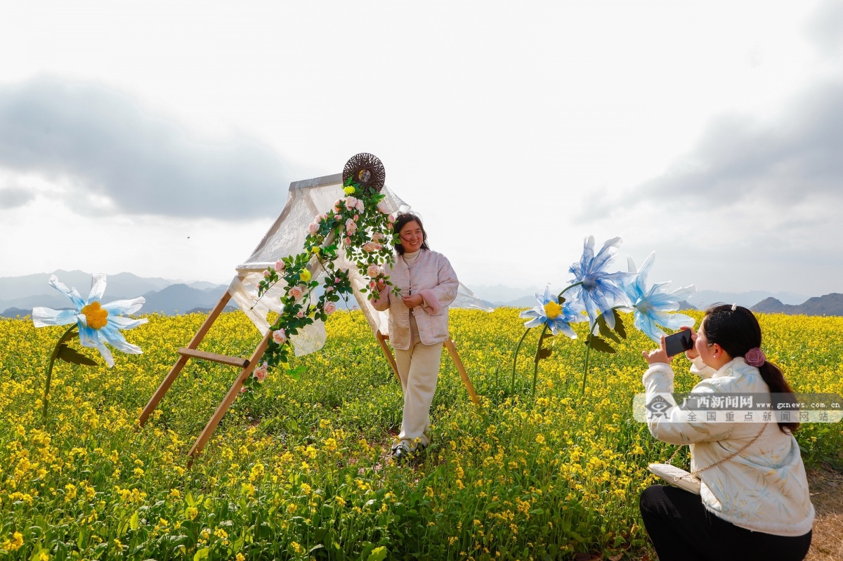 南丹3月10日讯(通信员 麦艳梅 张俊 练习生 李艳玲)三月春风暖,花开合理时。近日,南丹县云水谷高山油茶财产焦点示范区内,百亩油菜花竞相怒放,取连缀崎岖的油茶林交相辉映,勾勒出一幅“农旅融合”的春日画卷,吸引了多量旅客驻脚抚玩。据领会,为驱逐第115个“三八”国际妇女节,云水谷高山油茶财产焦点示范区出格筹谋了“春日花语,绽放她力量”节日从题勾当。示范区推出艺术插花角逐、各色非遗手做等特色勾当,还设置了旗袍、汉服逛园等互动项目。