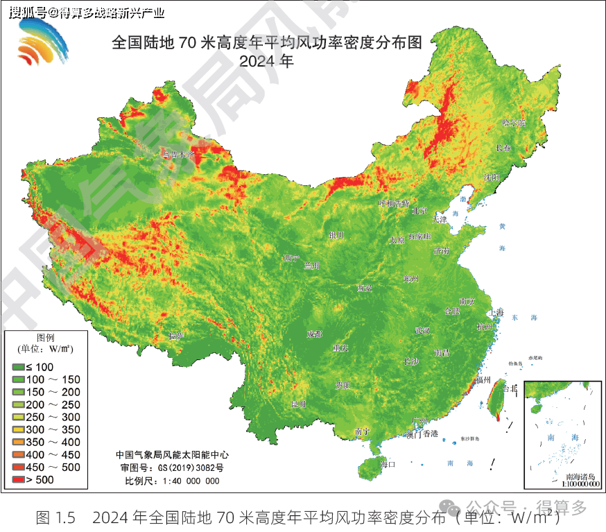 2024 年,全国100 米高度年平均风功率密度为229。4W/m²。从空间分布(图1。11)看,西部和东部、西部和东部、辽宁部、中部和东部、北部、山西北部、新疆东部和北部的部门地域、青藏高原大部、云贵高原的山脊地域、广西中南部、东南部沿海等地年平均风功率密度一般跨越300W/m²,我国其余大部地域年平均风功率密度一般正在300W/m² 以下,此中华东南部和西部、四川盆地、陕西南部、湖北西部、云南西南部、新疆南疆盆地等地的部门地域年平均风功率密度不脚150W/m²。
