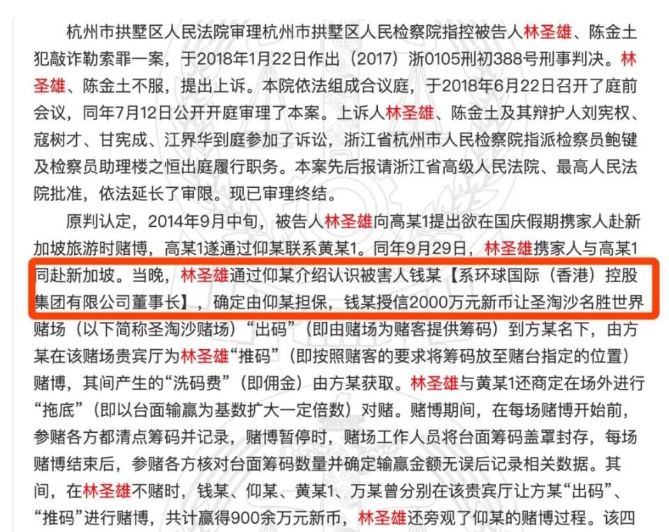 今天给大师引见的不是一个银行人,可是这小我号称比银行还有钱,明星李亚鹏已经给其赐号“钱多多”。钱多多实名叫钱峰雷,宁波市海曙区横街镇人,1976年生人。最后是引见赌客到赌场赌钱,从中抽成,俗称“叠码仔”。后来逐步做大了,就正在赌场承包高朋厅,做起了二房主。裁判文书网已经发过一个,温州富豪林圣雄想到境外赌场搏一把,把林圣雄带去赌场的,恰是钱峰雷。后来,钱峰雷取林圣雄交恶,2014年11月,林圣雄人员正在温州市文成县的龙尾山顶挖掘土坑,将钱峰雷引入此处,意欲“”。履历一番拉锯和,钱峰雷正在2015年1月给林圣雄2。5亿元消灾。然而,林圣雄仍然不满脚,继续,最终钱峰雷选择了报警,林圣雄等人身陷。