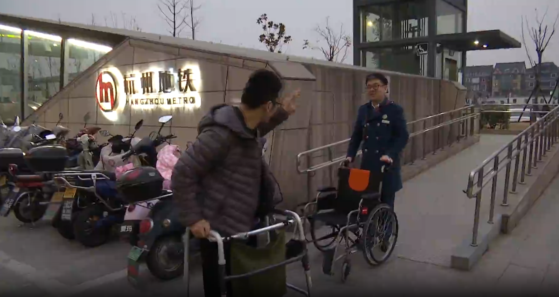 杭州地铁扶植三路坐值班 冯超:他其时穿得是冬季的冲锋服,有毛线衣这些,裤子也比力厚沉,行走方面较着看出来有一点点坚苦。我们上前扣问,他起头回应需要帮帮。