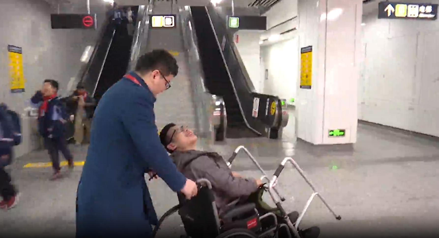 冯超找来坐里备用的轮椅,由他推着乐乐上下地铁,走换乘通道,这之后,三个坐的担任人还开了一个碰头会,上学的时候,为了保障乐乐能按时到校,由工做人员用轮椅护送乐乐进出坐、上下车;下学的时间,再决定是坐轮椅仍是乐乐本人行走。