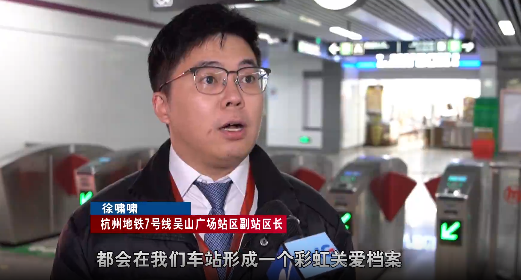 杭州地铁7号线吴山广场坐区副坐区长 徐啸啸:会正在我们车坐构成一个彩虹关爱档案,档案上会写他的乘坐时间,行为习惯等,提前通知下一个坐,做好预备。