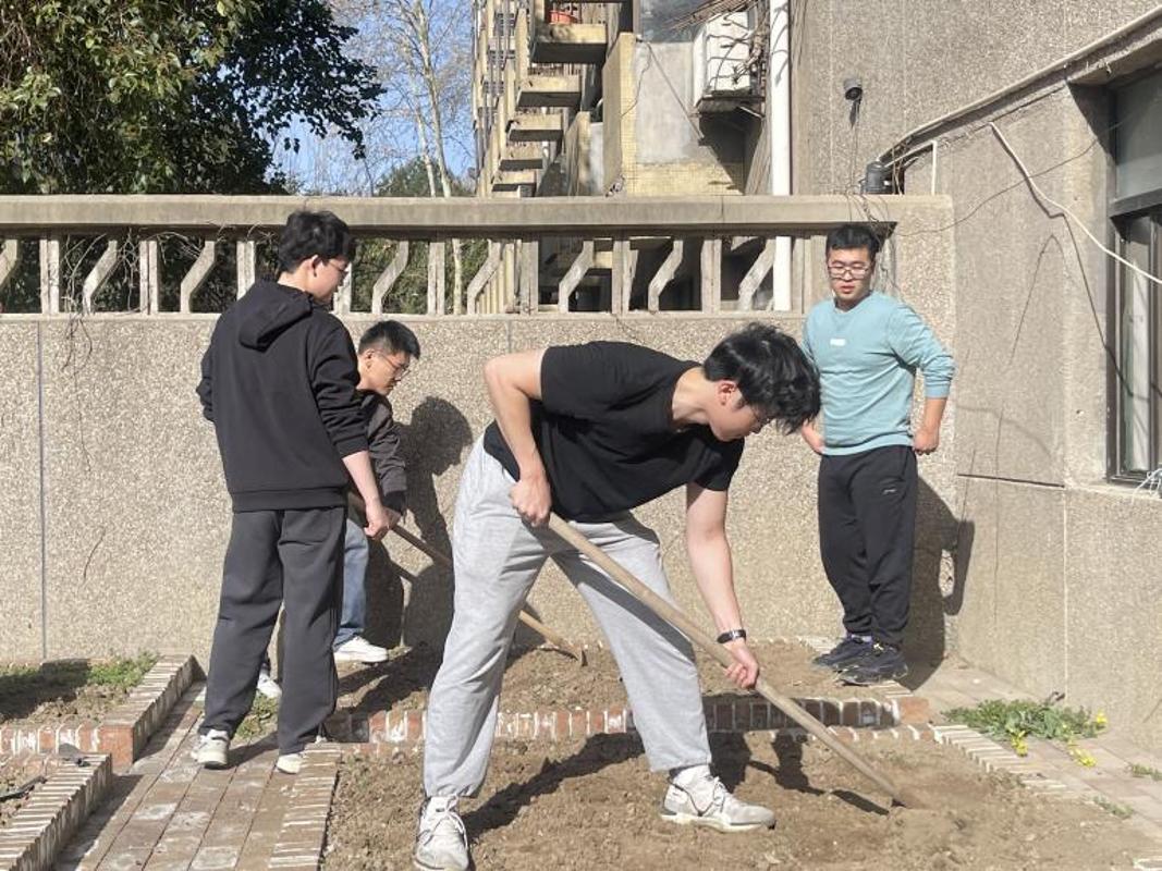 三月春回大地,西安交通大学兴庆校区校园内草木萌生、竞秀。为深切贯彻落实“五育并举”育人,劳动,近日,西安交通大学后勤保障部组织兴庆校区硕博研究生开展“绿色农耕劳育实践”勾当,以种植西红柿、黄瓜、韭菜等做物为载体,本次勾当由后勤保障部筹谋组织,旨正在通过沉浸式农耕体验,指导同窗们树立准确的劳动不雅,深化对“一粥一饭当思来之不易”的认知,同时将讲堂学问融入田间实践,推进德智体美劳全面成长。兴庆校区20余名硕博研究生正在后勤保障部工做人员的指点下,亲历翻土、播种、施肥、覆膜、浇水的完整种植流程,感触感染农耕文化的聪慧取魅力。勾当伊始,后勤保障部工做人员现场示范耕具利用技巧,翻整地盘方法和做物发展特征。同窗们手持铁锹,分组对地步进行深度翻垦,将板结的土壤逐层翻起,敲碎土块、清理碎石杂草,再用钉耙将地盘梳理平整。颠末半小时劳做,本来芜杂的荒地变得松软细腻,为播种打下根本。随后,后勤保障部工做人员指点同窗们种植各类做物。同窗们按照西红柿、黄瓜、韭菜的分歧发展特征分区功课,同时预留出将来藤蔓攀爬的空间;韭菜长苗则修剪根系后成簇栽种,压实土壤确保曲立发展。播种过程中,同窗们频频调整深度取间距,切身体验农业种植的精细要求。