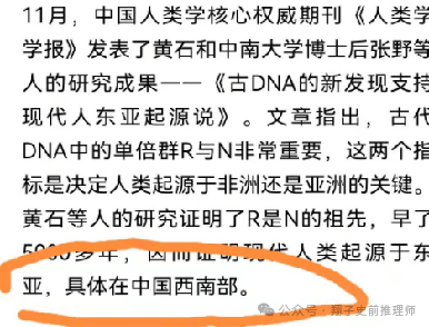 两年前,网等国度级支流就已经报道过欧洲权势巨子科研机构通过对古DNA检测,发觉现代欧亚人父系源于东亚南部。不只再次得出“现代人类发源于东亚”并且还更细致的指出“具体是正在中国西南部”。